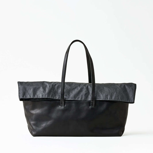 Réalisé en cuir de vachette naturel, chaque sac est doté d'une enveloppe intérieure pliable extrêmement fonctionnelle, qui permet au porteur de changer la taille du sac, pour plus de praticité dans la vie de tous les jours. L'enveloppe est fabriquée en cuir washi, une pâte à papier japonaise naturellement tannée. Disponible en deux tailles.