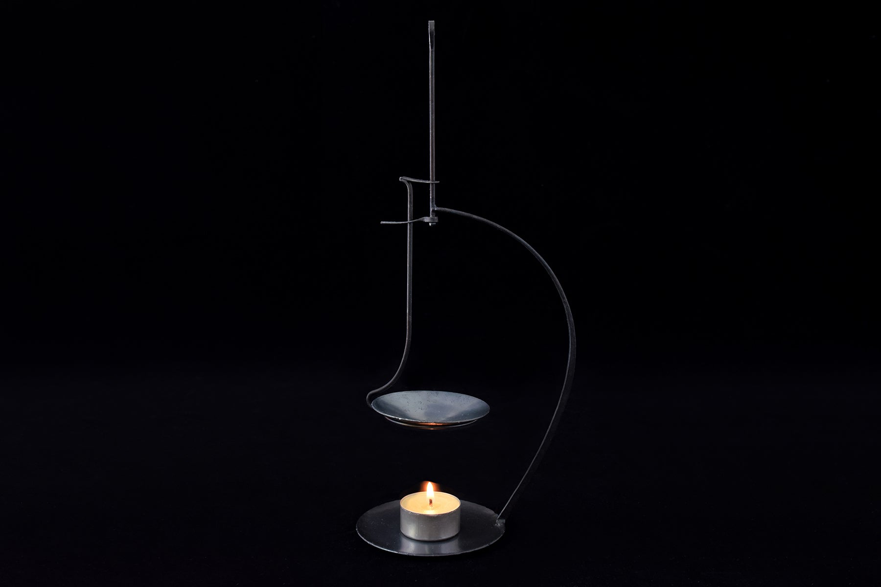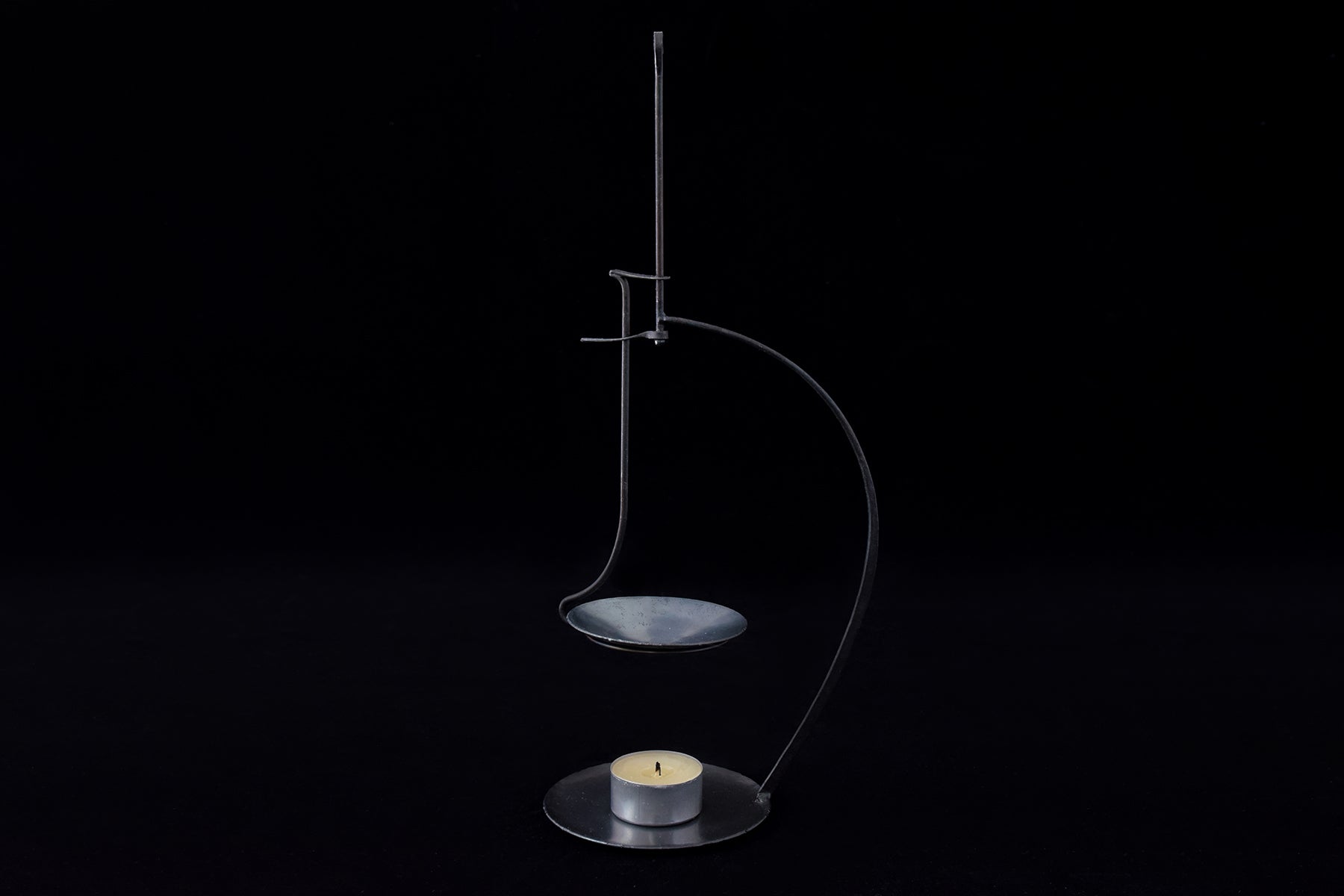 Il s'agit d'un porte-encens en fer inspiré de l'outil traditionnel japonais JIZAI-KAGI, qui est un crochet en fer suspendu servant autrefois à suspendre les marmites au foyer.