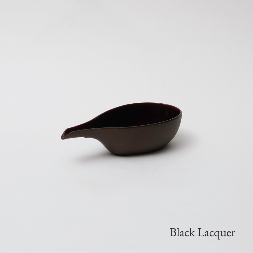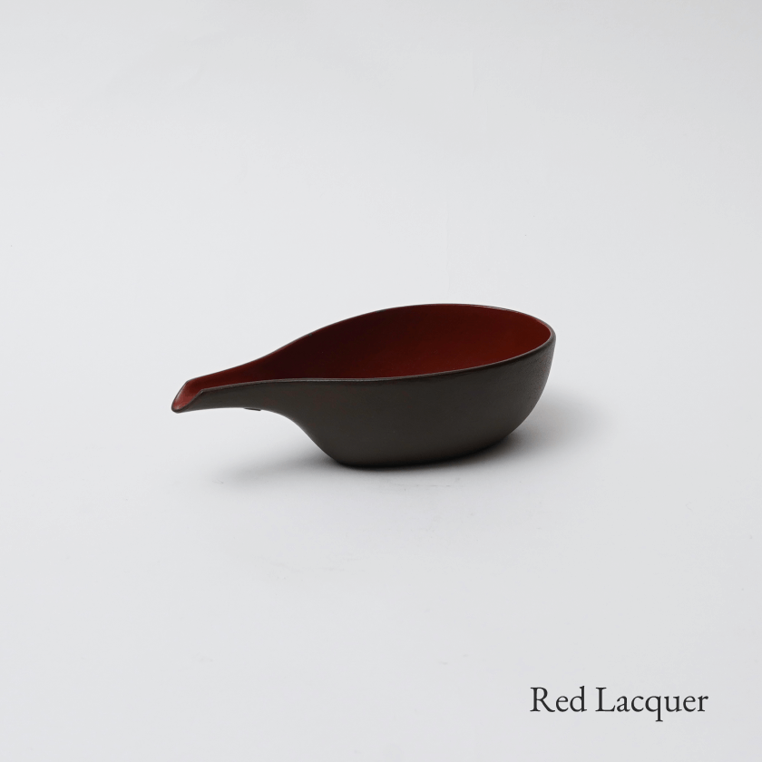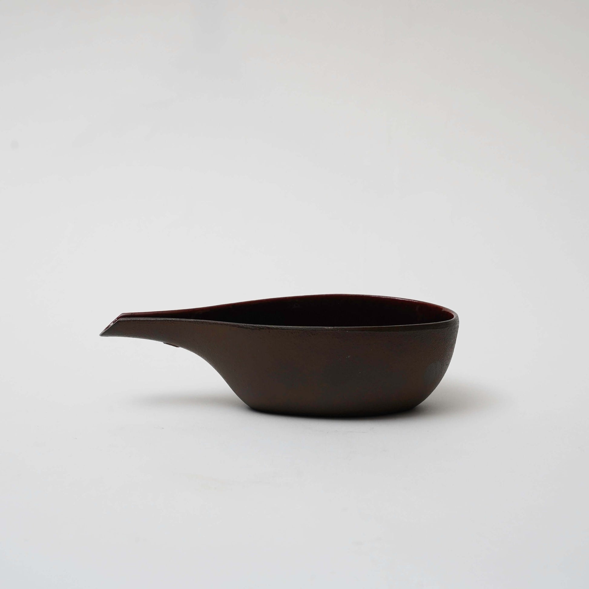 The pourer is finished with a lacquer base, followed by a unique iron vase coating made from copper and boiled tea, creating a distinctive iron texture while preventing rust. The inside is painted with colored lacquer and baked for a smooth, durable finish.