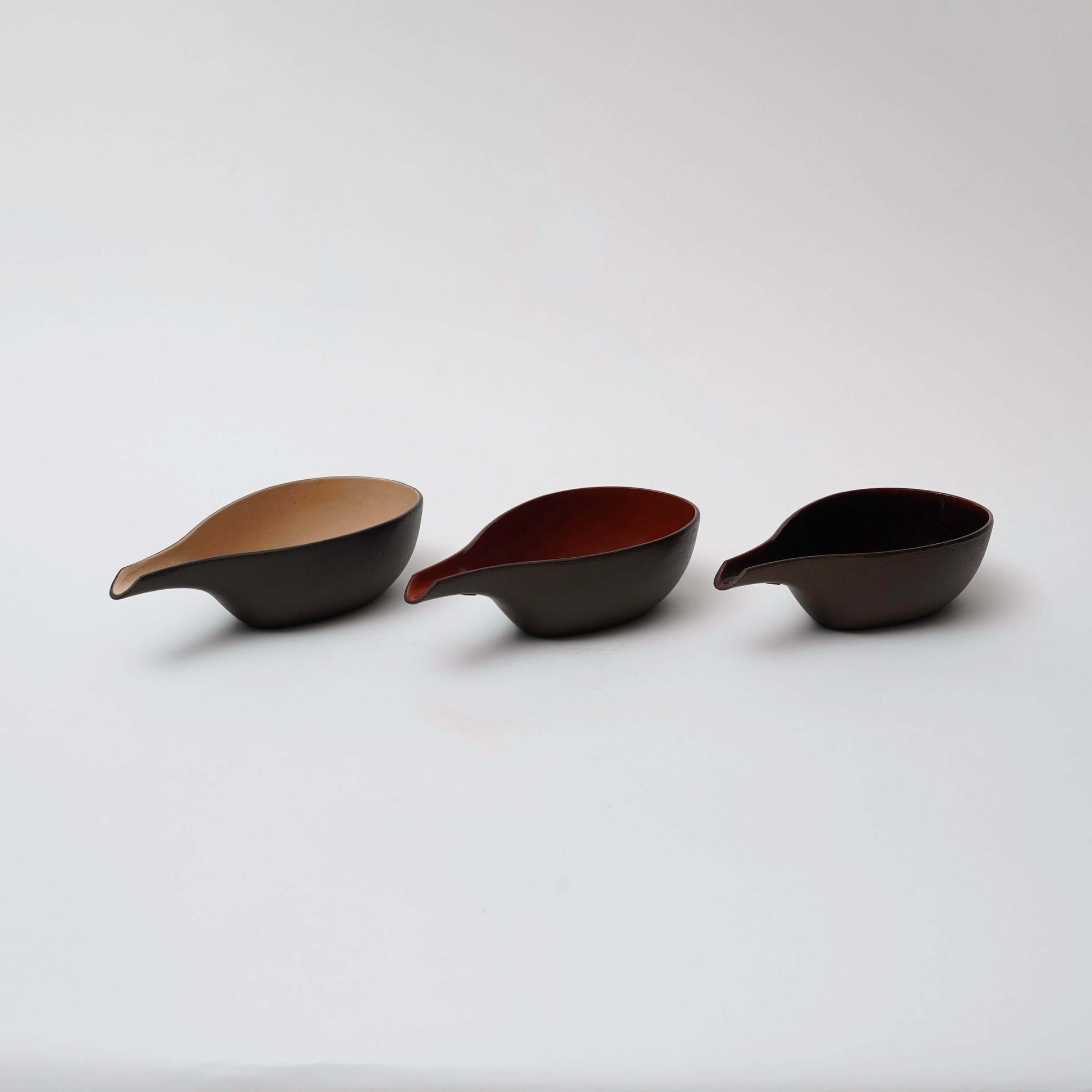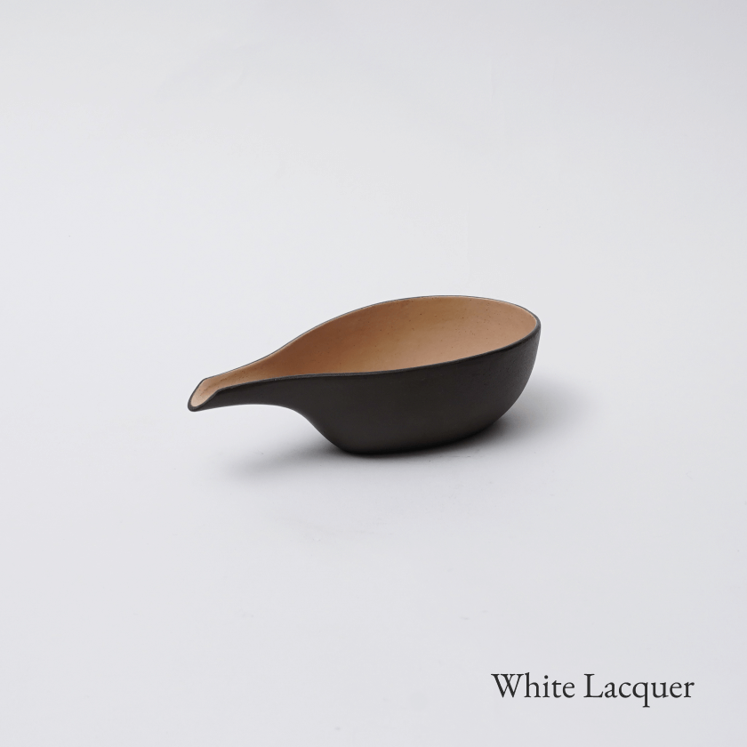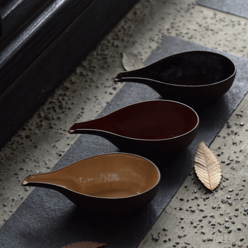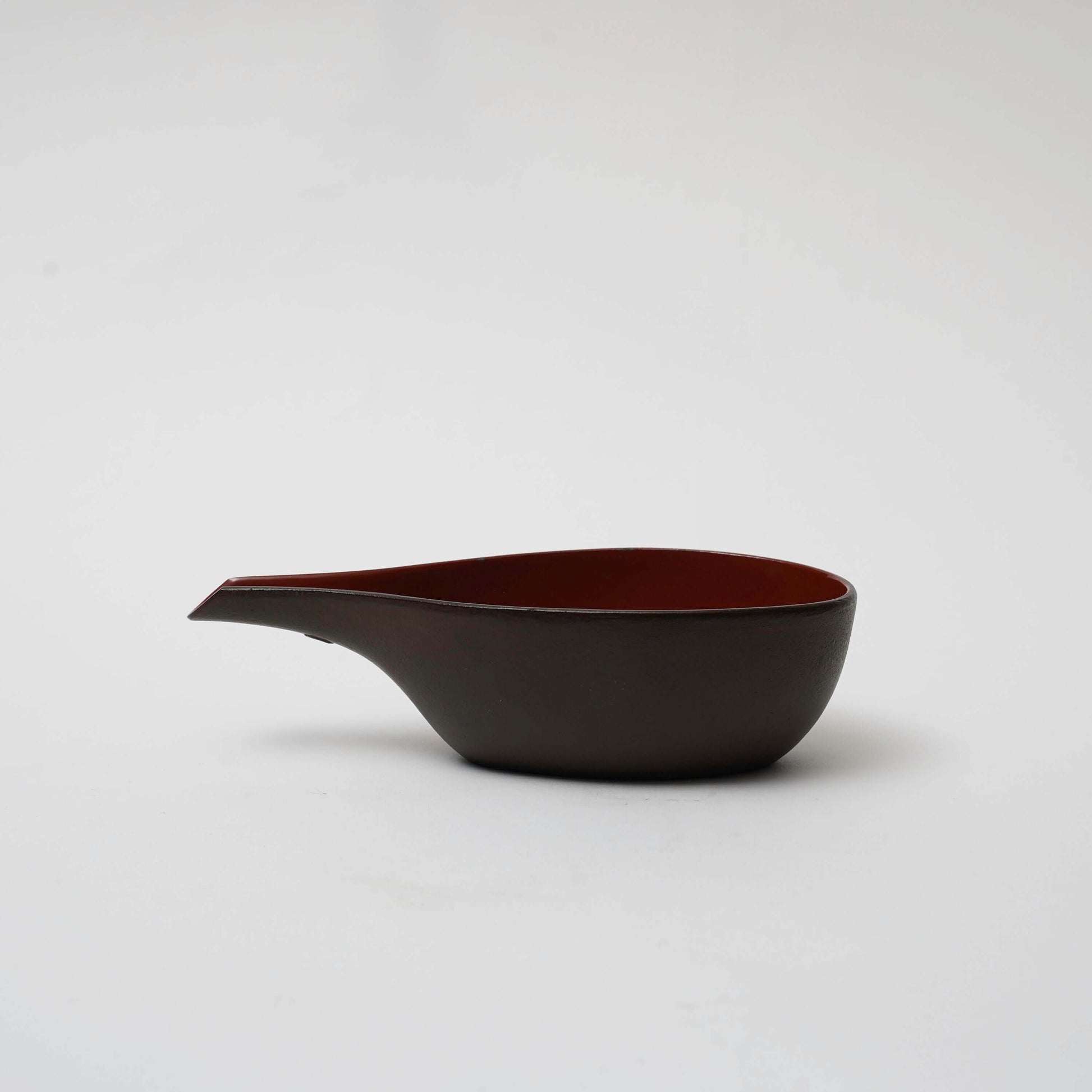 The pourer is finished with a lacquer base, followed by a unique iron vase coating made from copper and boiled tea, creating a distinctive iron texture while preventing rust. The inside is painted with colored lacquer and baked for a smooth, durable finish.