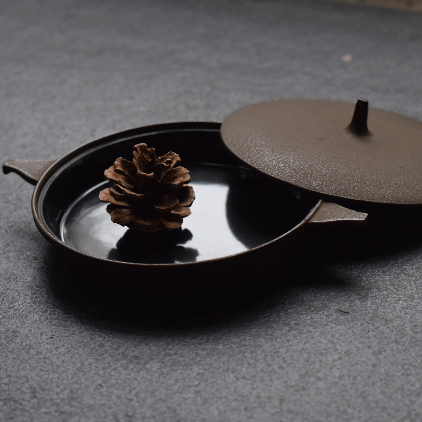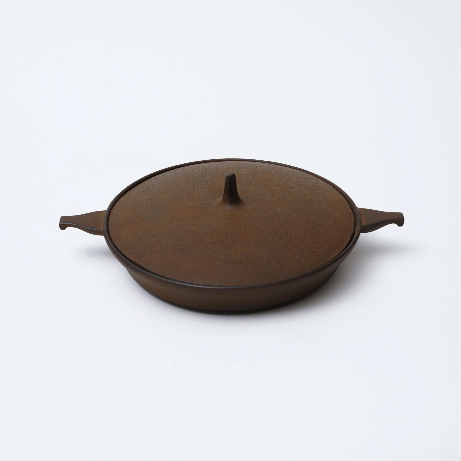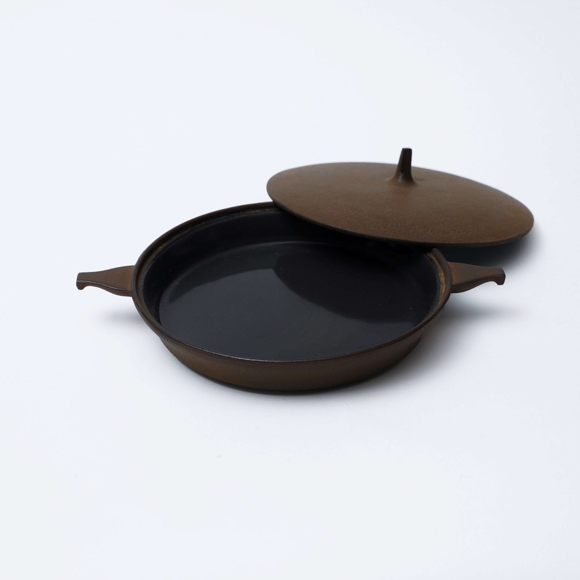The interior is finished with a smooth enamel glaze, baked at high temperature for durability and ease of use. The exterior is treated with a lacquer base and a traditional iron serum—copper and boiled tea—enhancing the pan’s unique texture and offering rust protection.