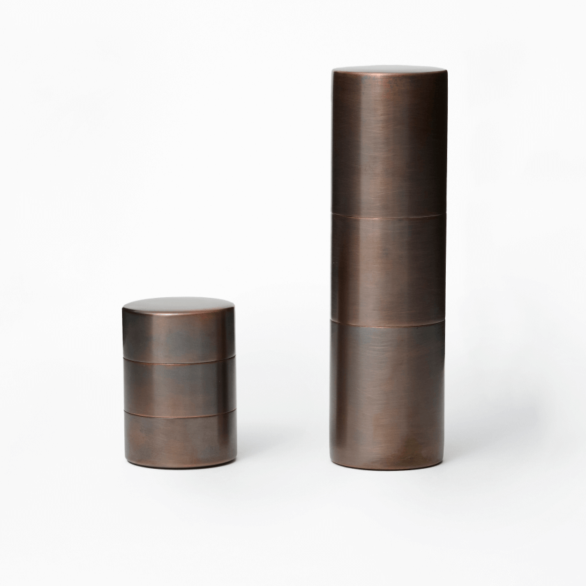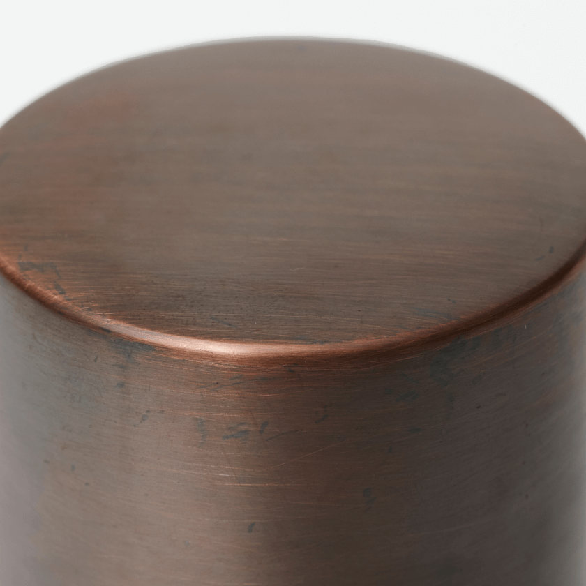 La surface extérieure, patinée par un artisan qualifié, met en valeur la texture riche du cuivre. L'intérieur est recouvert d'une couche d'étain pour préserver les feuilles de thé dans des conditions hygiéniques.